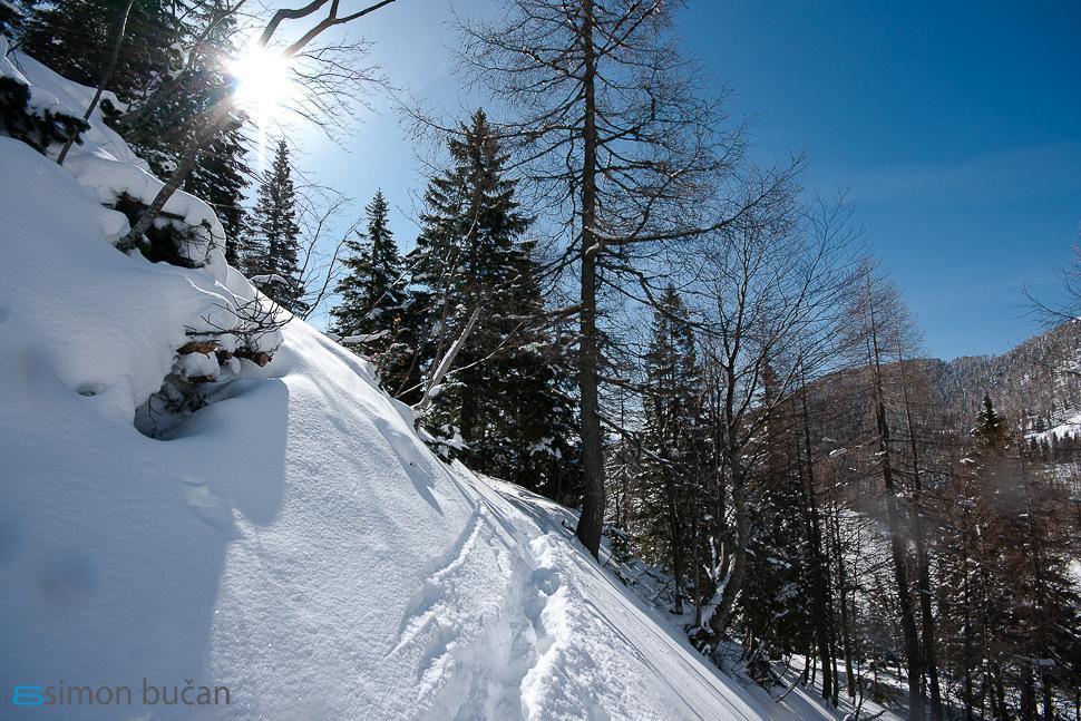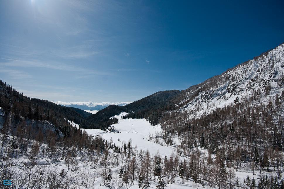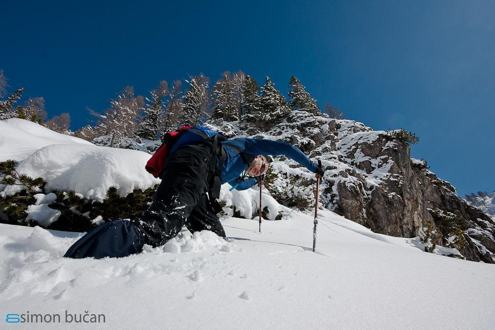 Plan was to go on Veliki Draški vrh by foot, but a lot of new snow and wading almost one meter deep on some exposed parts, prevent us to reach top of mountain. But sunbathing and couple gulps of “slovenian medicine” šnops on Konjščica mountain pasture made our day.